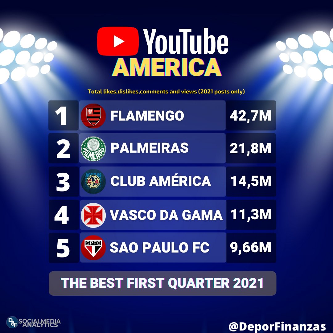 ? Most popular american football clubs on #youtube during the first quarter of 2021!