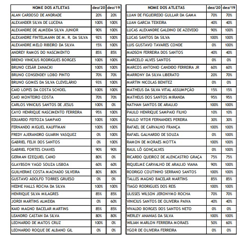 Direitos econômicos do atletas do Vasco (dez/19 - dez/20):