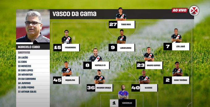 VascoTV apresenta disposição tática do time titular deste sábado; confira