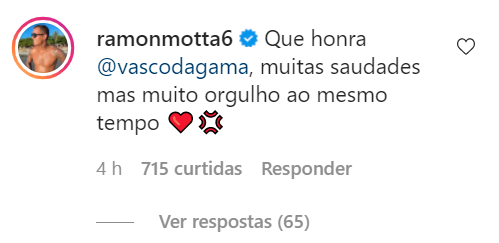 Vasco parabeniza o aniversariante Ramon, que agradece: 'Que honra'