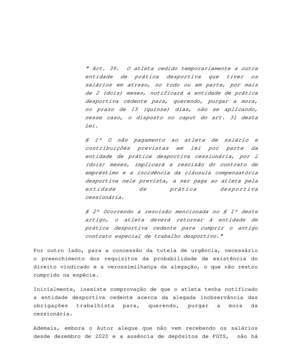 A juíza Luciana Gonçalves de Oliveira Pereira das Neves, titular da 58ª Vara do Trabalho do Rio de Janeiro do TRT indeferiu em primeira instância. Cabe recurso para o atleta, representado pelo advogado Décio Neuhaus.