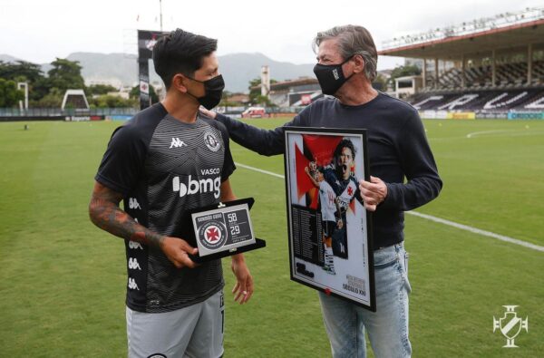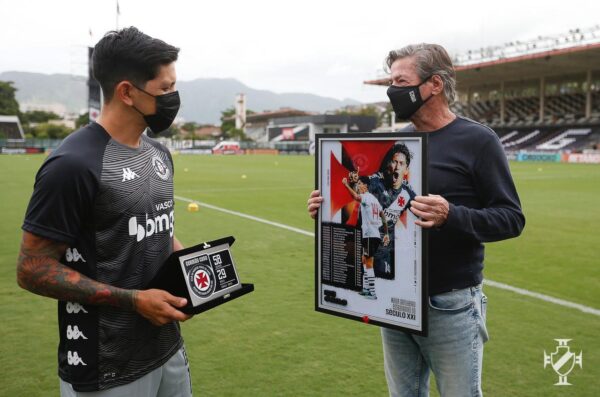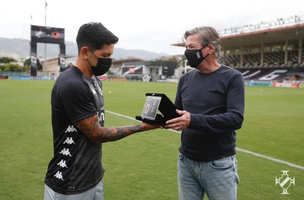 – Essa é uma singela homenagem do Vasco para você. Gostaria de te parabenizar pelos 29 gols e dizer que é uma honra para o Clube ter um jogador tão íntegro e comprometido no nosso elenco – afirmou o presidente Jorge Salgado para Germán Cano no momento da entrega do quadro.