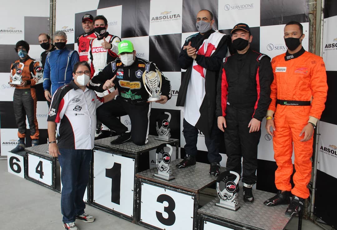 Pódios da primeira etapa do Campeonato Paulista de FVee, em Interlagos, com duas baterias na classificação geral, Máster e Júnior.