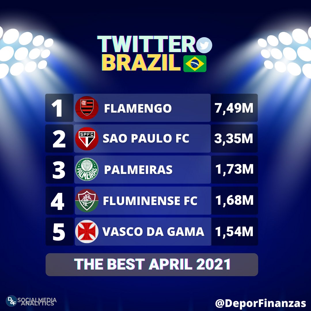 ?⚽?? Os 5 clubes brasileiros com mais engajamento no #twitter durante abril 2021!