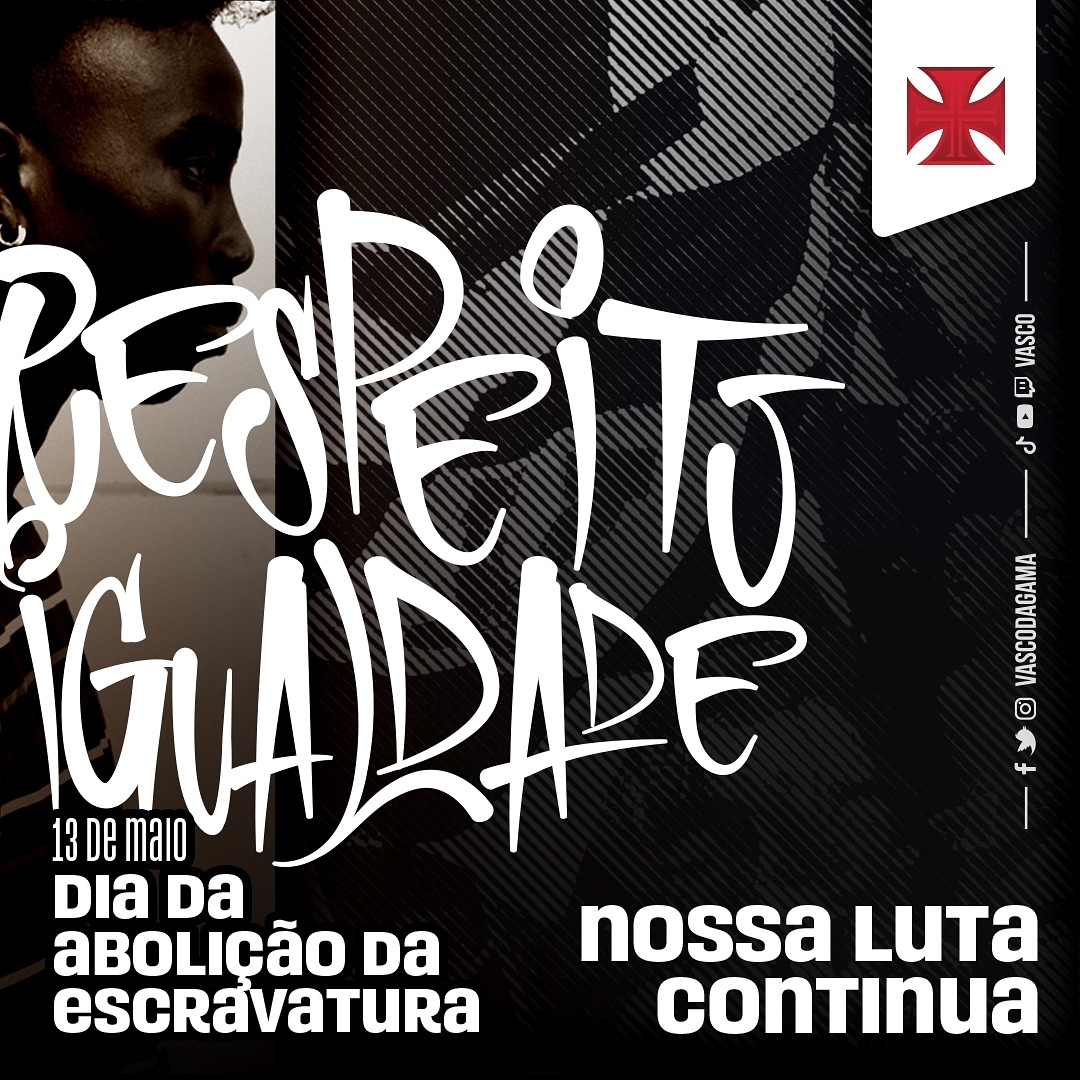 Vasco publica mensagem sobre o Dia da Abolição da Escravatura: 'Dia de reflexão. A luta continua'