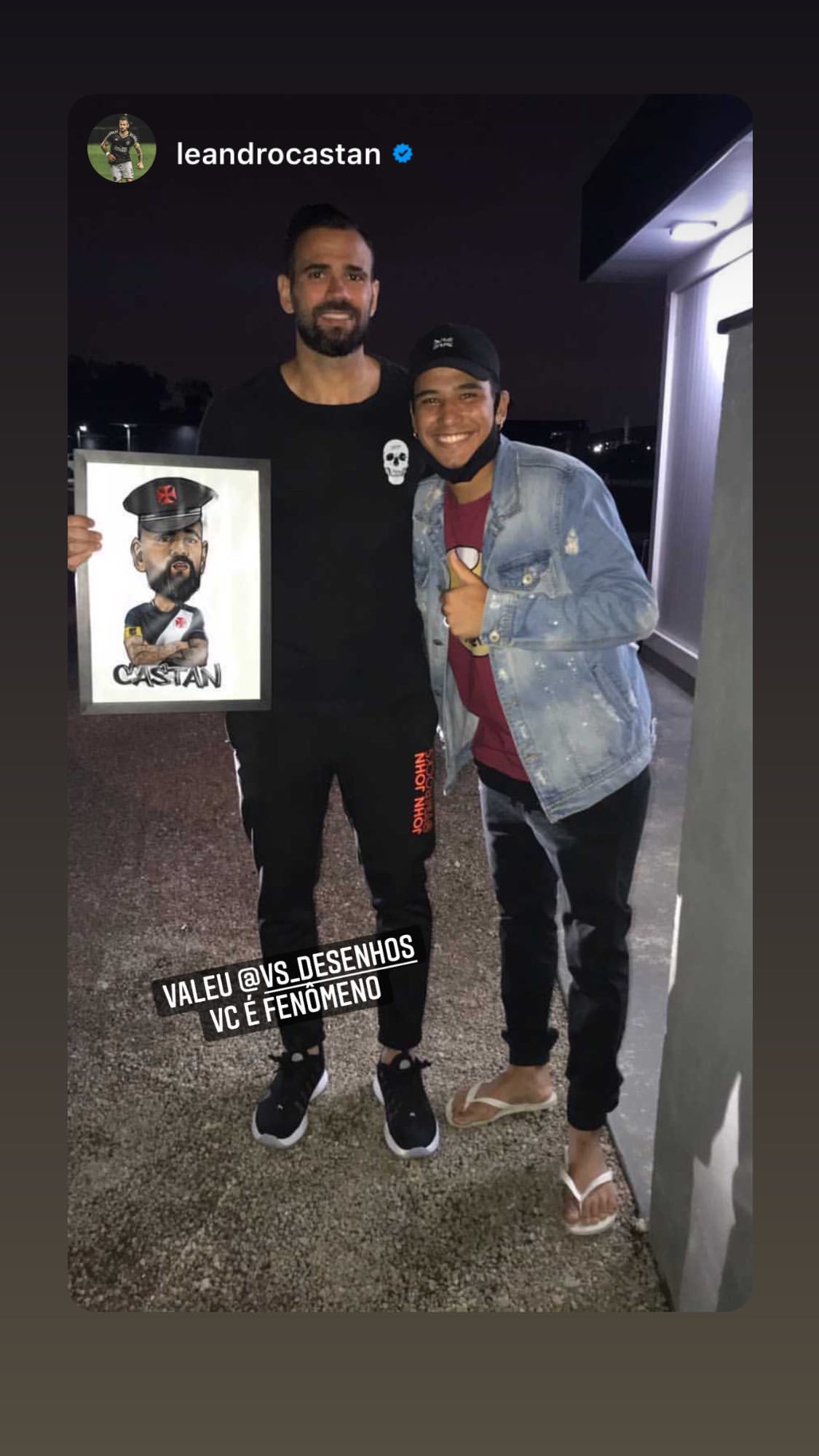 Artista entrega caricatura de Leandro Castan ao capitão vascaíno; veja foto