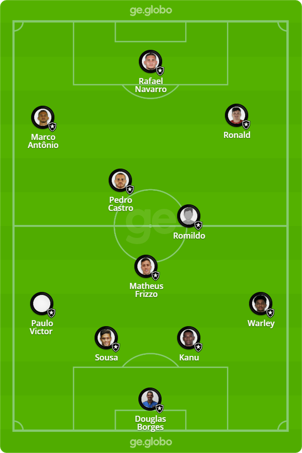 O provável Botafogo tem: Douglas Borges; Warley, Kanu, Sousa e PV; Matheus Frizzo, Romildo e Pedro Castro; Marco Antônio, Ronald e Rafael Navarro.
