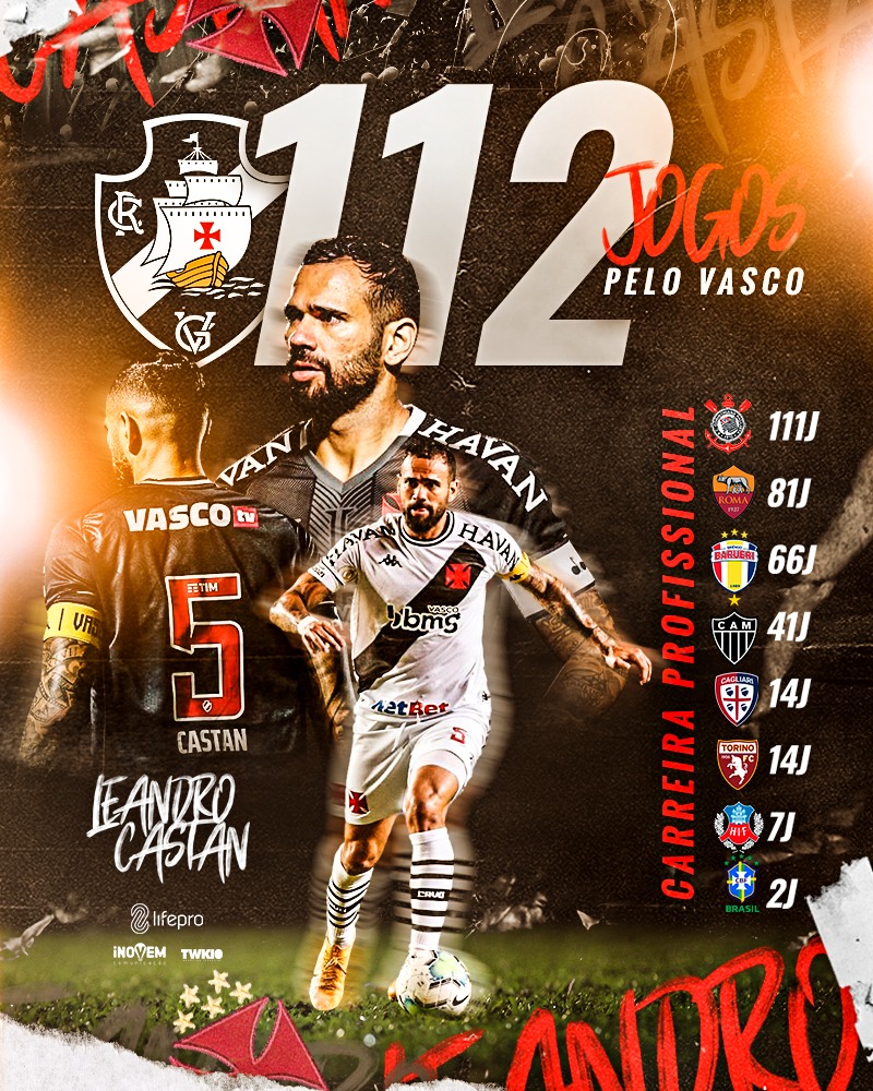 Importante marca para @l_castan na carreira. Mais uma!!! @VascodaGama clube pelo qual mais atuou e perto dos 450 jogos.
