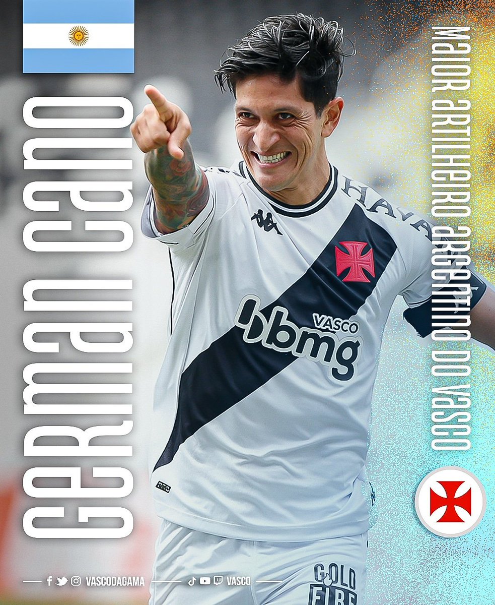 Com o gol marcado hoje, @Germancanoofi se isolou como o maior artilheiro argentino do Vasco e atingiu também o Top 3 da artilharia dos gringos.