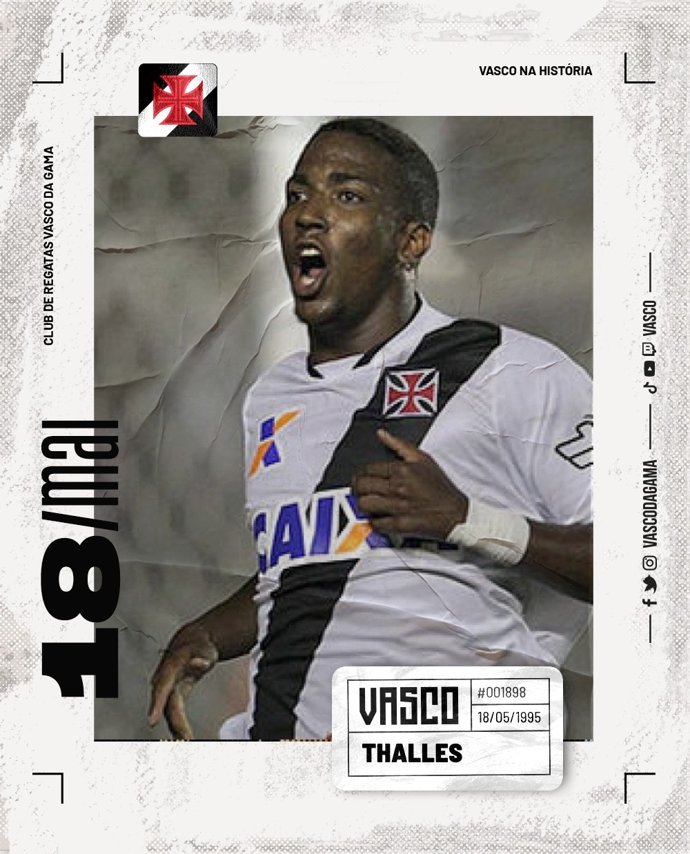 Vasco homenageia Thalles, que faria 26 anos nesta 3ª-feira