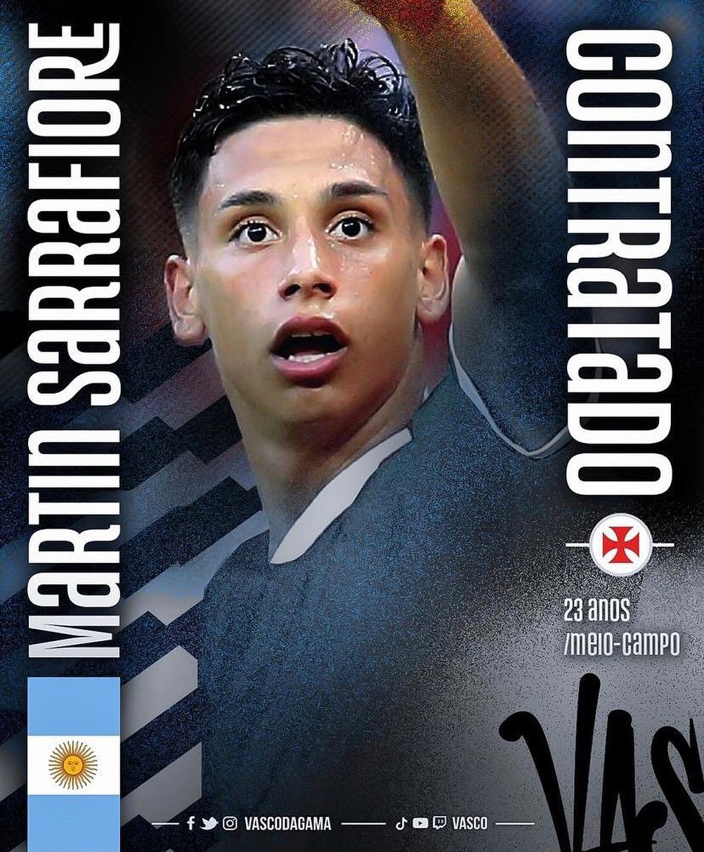 Sarrafiore comemora acerto com o Vasco: 'Estaremos juntos nos desafios desta temporada muito importante!'