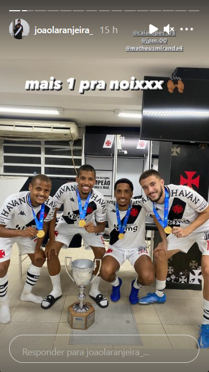 Crias João Pedro, Laranjeira, Miranda e Caio Lopes posam com a Taça Rio e comemoram: 'Mais 1 pra noixxx'