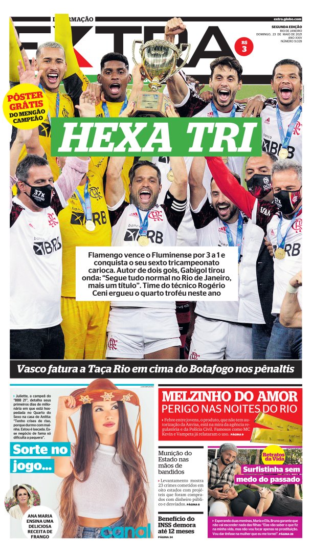 Na finalíssima da Taça Rio, disputada no último sábado, em São Januário, o Vasco derrotou o Botafogo nos pênaltis por 3 a 0, com 3 defesas de Vanderlei, após perder no tempo normal por 1 a 0, e ficou com a taça. Veja as capas dos jornais.