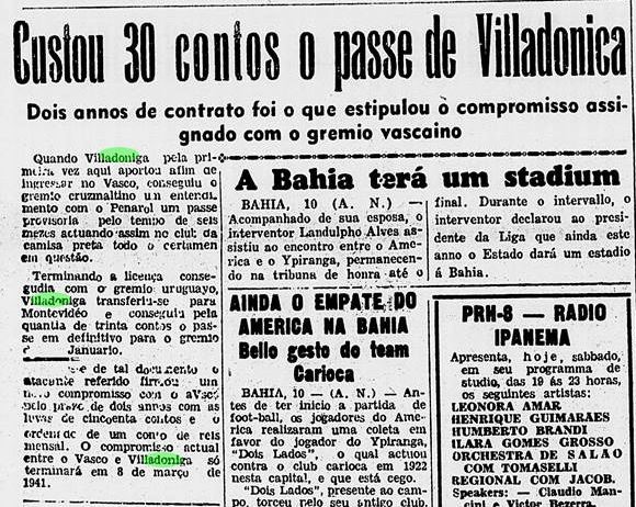 A respeito da última matéria sobre o German Cano e o maior artilheiro estrangeiro do Vasco: Villadoniga que estreou contra o Flamengo na inauguração do "estádio" da Gávea com a vitória dos Camisas Negras por 2 a 0!