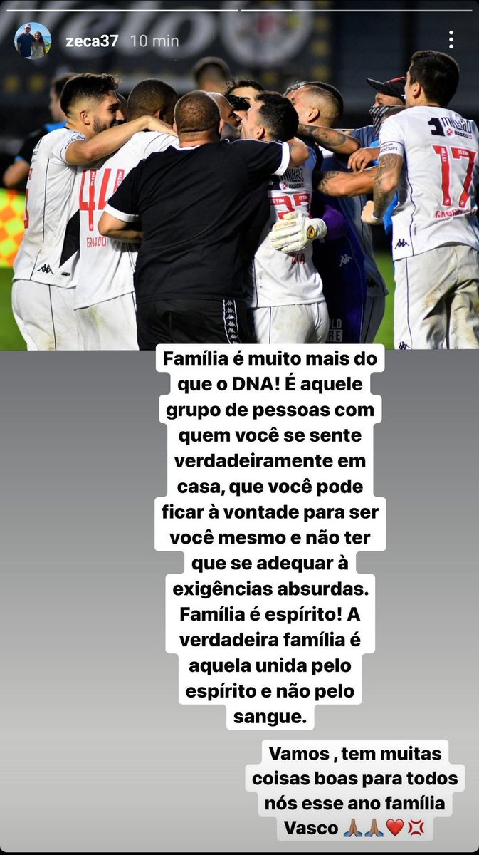 Zeca publica foto com jogadores do Vasco e escreve: 'Família é muito mais do que o DNA'