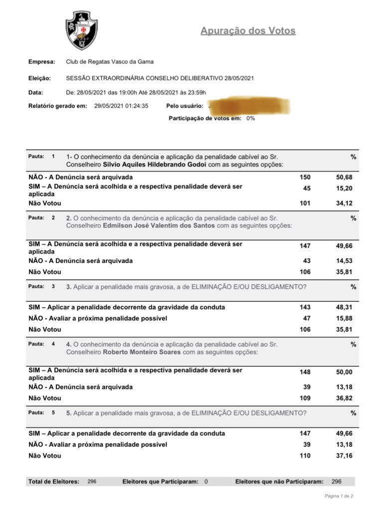 Tivemos acesso ao relatório de apuração dos votos. Segue: