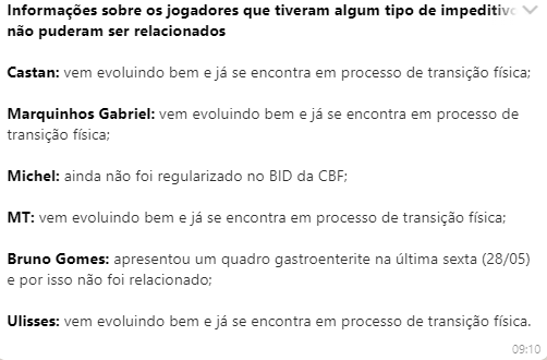 Vasco atualiza a situação dos atletas que estão indisponíveis. #gevas