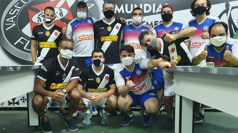 As equipes de futebol de mesa da modalidade Bola 12 Toques do Club de Regatas Vasco da Gama (CRVG) e do Friburguense Atlético Clube se enfrentaram no último domingo, dia 30/05/2021, em competições individuais e por equipes, na Sala da Divisão de Futebol de Mesa do Vasco da Gama.