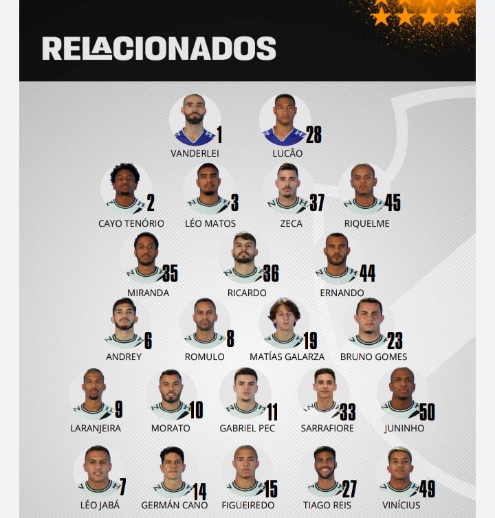 Os relacionados pelo técnico Marcelo Cabo. Novidade é o retorno de Bruno Gomes, que foi desfalque do Vasco na derrota para o Operário-PR devido a uma gastroenterite. #BacaxáENM