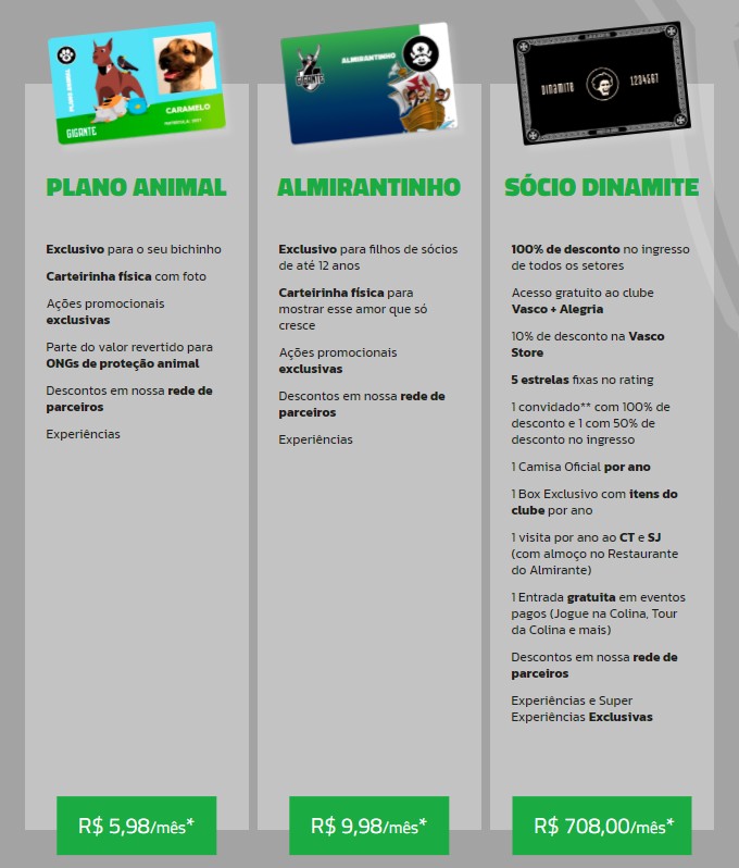 Vasco anuncia novos planos de sócios: Almirantinho, Animal e Dinamite; confira