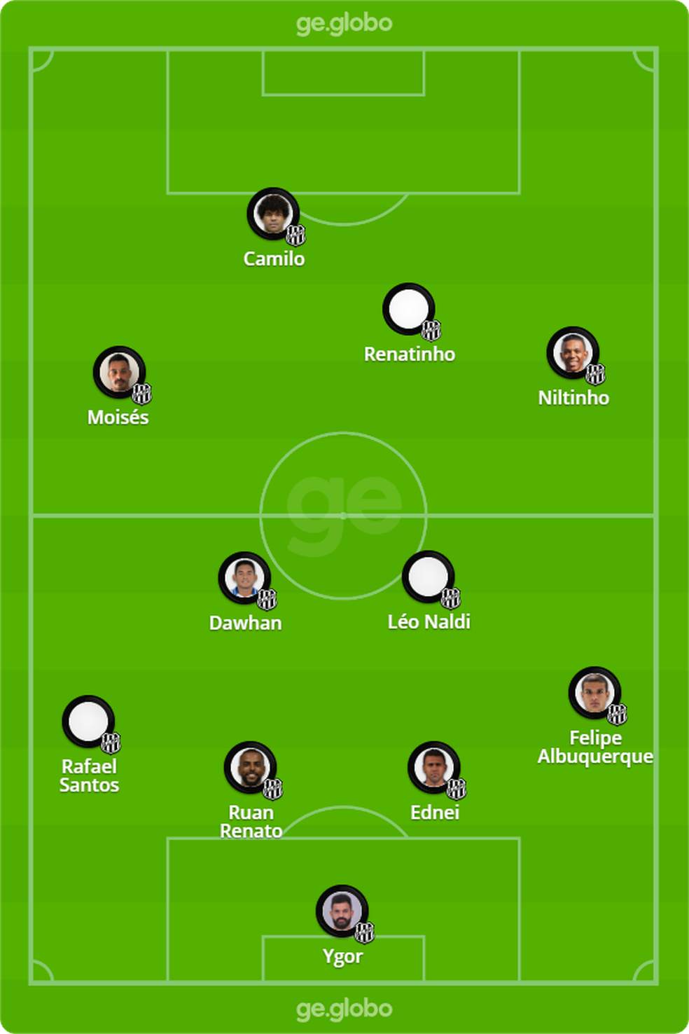 Provável escalação: Ygor Vinhas, Felipe Albuquerque, Ednei, Ruan Renato e Rafael Santos (Jean Carlos); Dawhan, Léo Naldi e Renatinho; Niltinho, Moisés e Camilo.