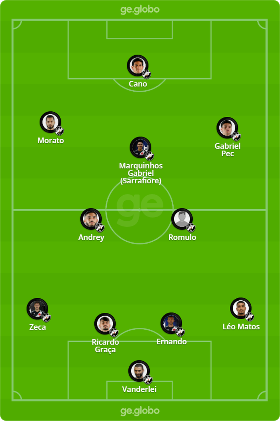 Provável escalação: Vanderlei; Léo Matos, Ernando, Ricardo Graça e Zeca; Andrey, Romulo e Marquinhos Gabriel (Sarrafiore); Morato, Pec e Cano.