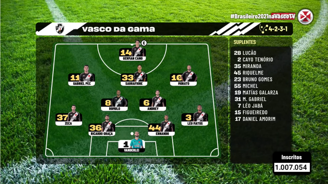 VascoTV apresenta disposição tática do time titular deste domingo; confira