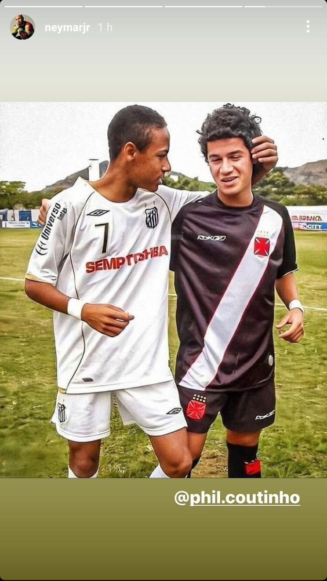 Neymar posta foto com Philippe Coutinho em um Vasco x Santos na base; veja