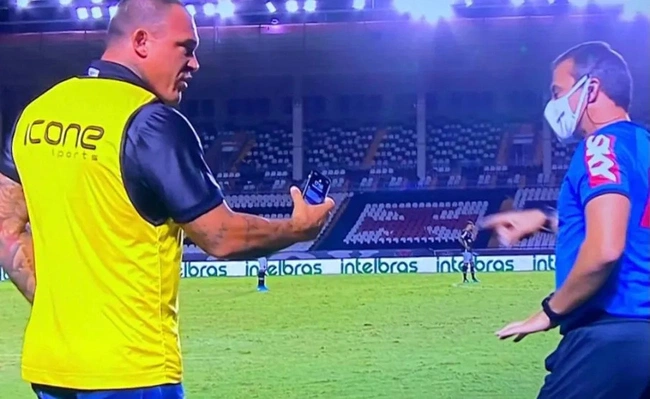 Por não existir VAR nesta fase da Copa do Brasil, não pode haver nenhum tipo de interferência externa para ajudar a decisão de dentro de campo. Porém, após o gol do Vasco, o juiz demorou seis minutos para dar a sua decisão no campo. A grande polêmica foi pelo fato de Leandrão, técnico do Boavista, ter mostrado o lance no celular para o quarto árbitro. Confira a imagem: