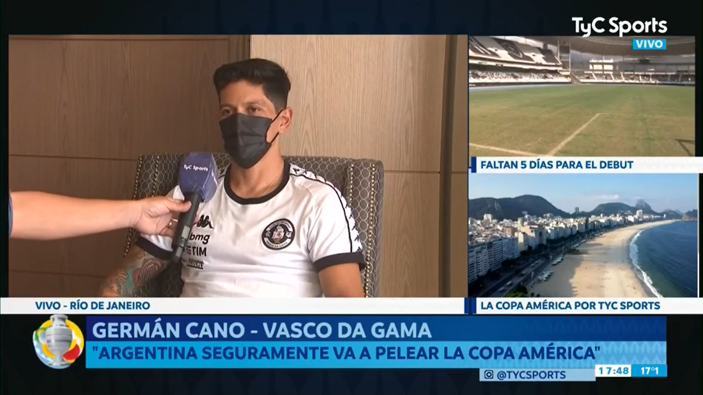 O Vasco garantiu a classificação para as oitavas de final da Copa do Brasil ao empatar com o Boavista por 1 a 1. Autor do gol cruz-maltino, Germán Cano concedeu uma entrevista ao TyC Sports, da Argentina, e falou sobre seu momento no futebol brasileiro. Ele elogiou a torcida vascaína ao dizer que foi muito bem recebido e que quer recolocar o clube "onde merece estar pela sua história e tradição no Rio de Janeiro."