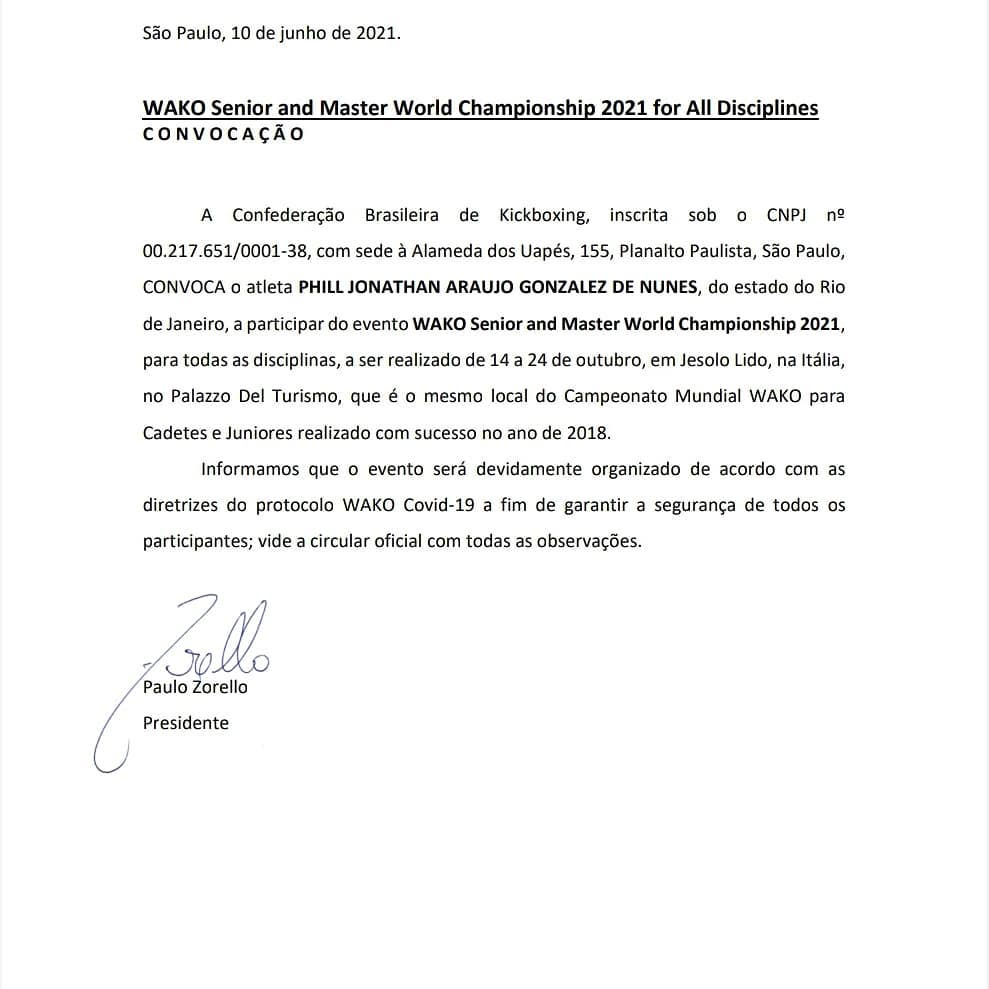 Kickboxing: Phill Jonathan é convocado para o Mundial Senior e Master em outubro na Itália