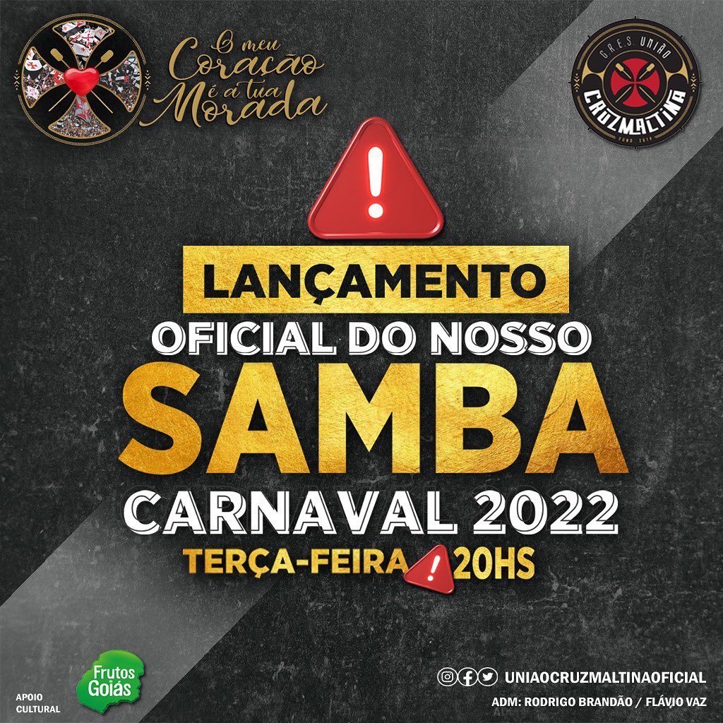 União Cruzmaltina anuncia que lançará seu samba para o Carnaval 2022 nesta 3ª-feira