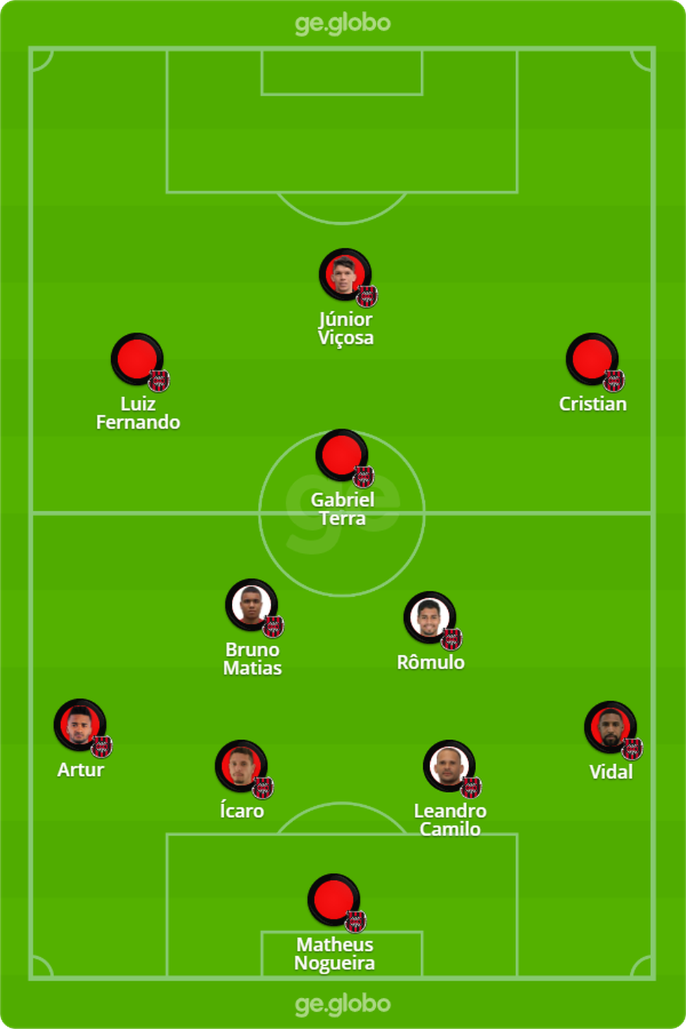 Provável escalação: Matheus Nogueira; Vidal, Leandro Camilo, Ícaro e Arthur; Rômulo, Bruno Matias e Gabriel Terra; Luiz Fernando, Cristian e Júnior Viçosa