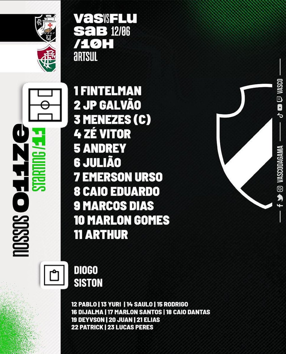 Juniores: Veja a escalação do Vasco para o jogo contra o Fluminense pela Taça Guanabara Sub-20