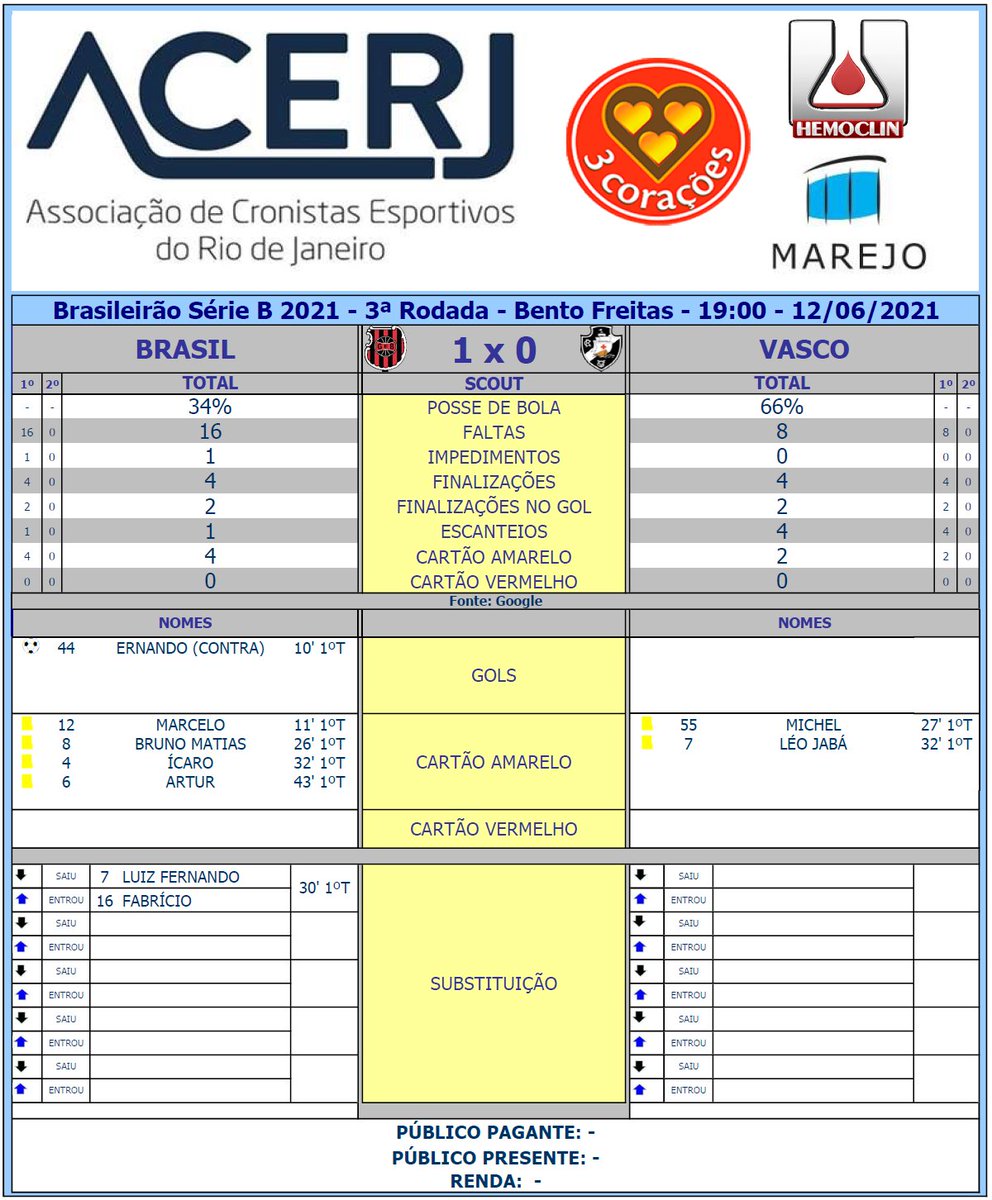 Scout do 1º Tempo de Brasil de Pelotas e Vasco pela 3ª Rodada do Campeonato Brasileiro da Série B 2021 no Bento Freitas #BrasileiraoSerieB #acerjinforma #BRAxVAS #VascoDaGama #VASCO @VascodaGama