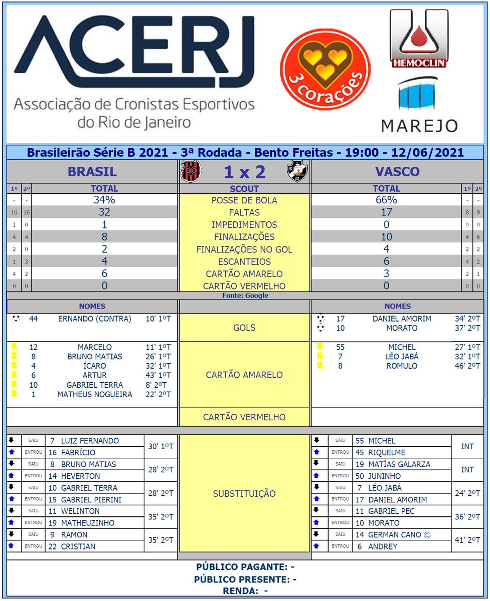 Agora, o Vasco tem quatro pontos na Série B e pulou para a décima colocação. O Brasil de Pelotas, por sua vez, continua sem vencer e tem apenas um ponto, na zona de rebaixamento, na 18ª colocação.