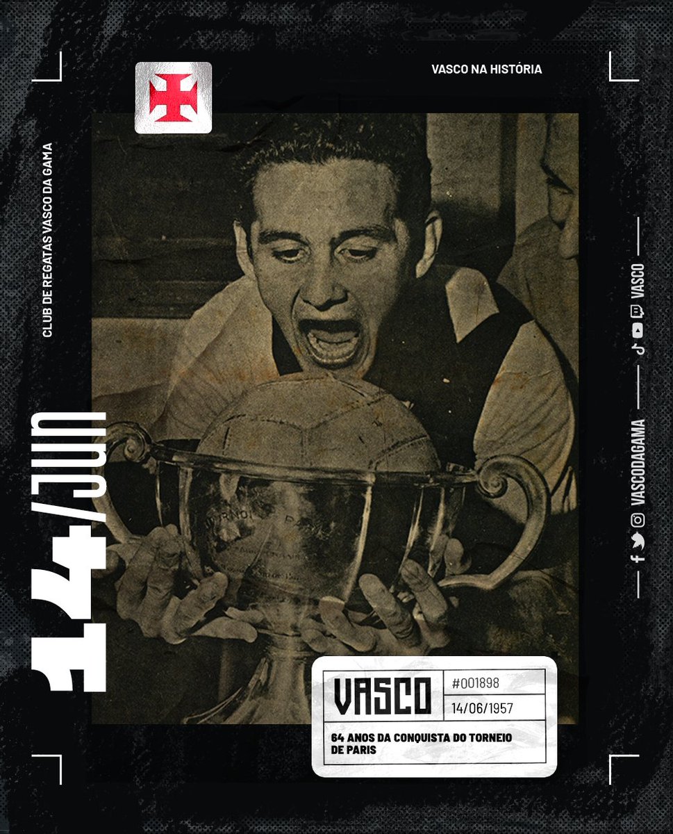 Há 64 anos, o Vasco conquistava um de seus títulos mais gloriosos, o Torneio de Paris de 1957.