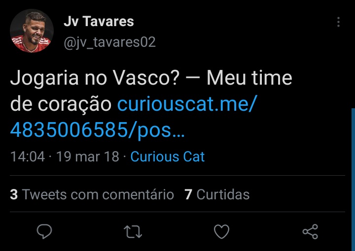 Especulado no Vasco, Tavares admitiu em 2018 que é vascaíno