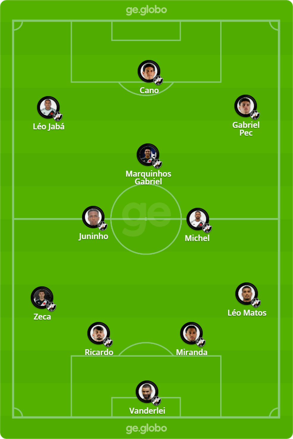 Provável escalação: Vanderlei; Leo Matos, Ricardo Graça e Miranda e Zeca; Michel, Juninho e Marquinhos Gabriel; Pec, Cano e Léo Jabá.