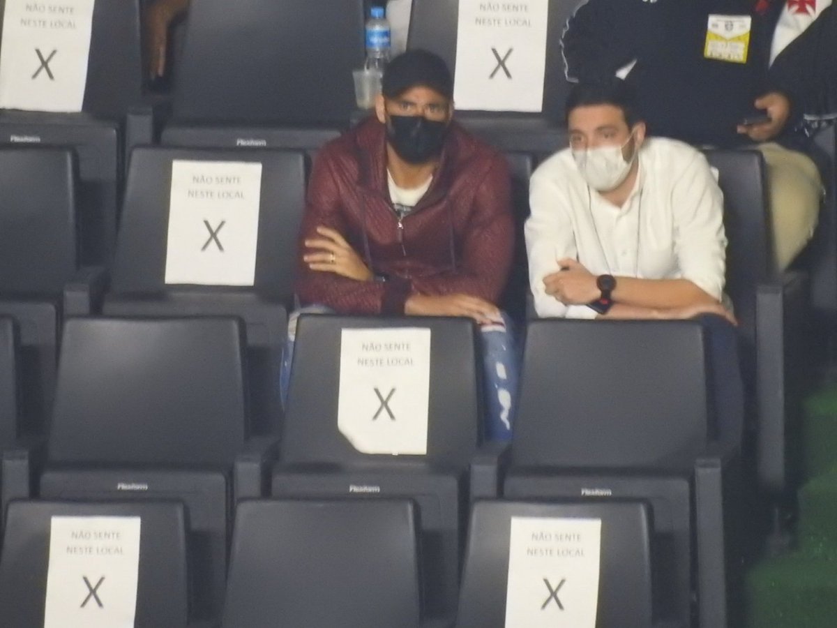 Ainda em recuperação física, Castan está na #trcolina. Vê o jogo ao lado do diretor executivo Alexandre Pássaro.