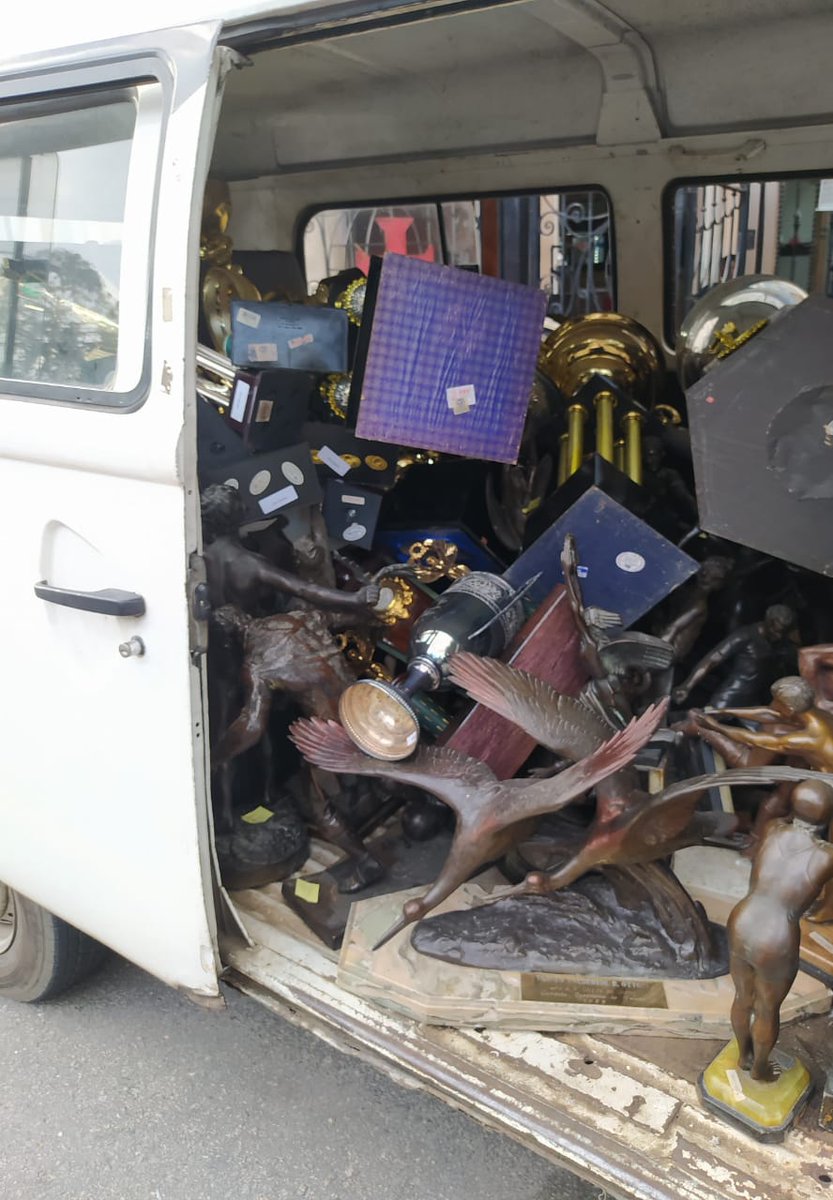 Vasco inicia mudança de troféus, e foto com taças empilhadas em veículo na rua viraliza