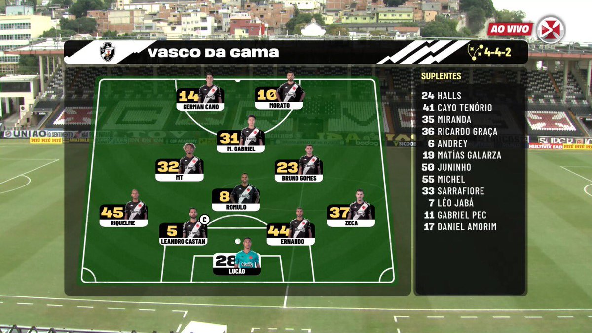 16/06/21 - VascoTV apresenta disposição tática do time titular desta 4ª-feira; confira