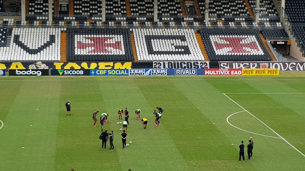 Jogadores do Vasco se aquecem no gramado de São Januário; veja foto