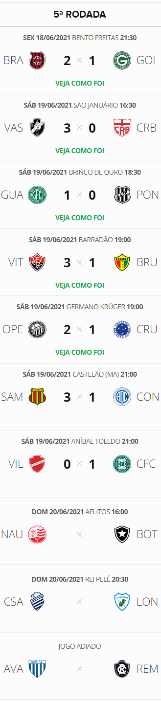 Fonte: NETVASCO (texto), ge (classificação, resultados)