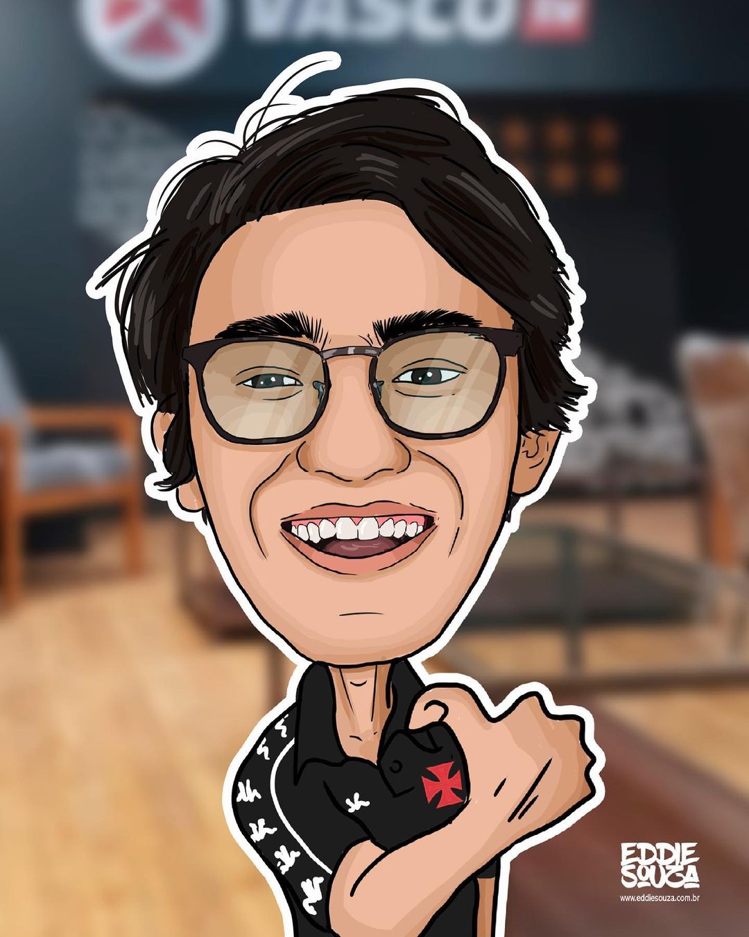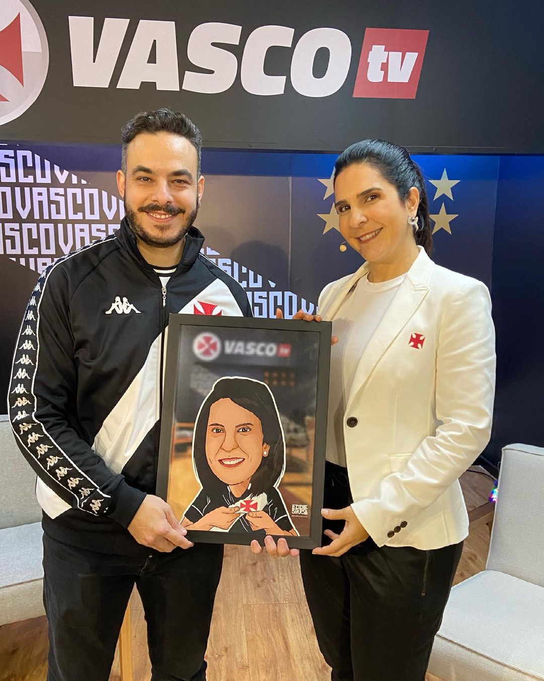 O ilustrador vascaíno Eddie Souza participou do quadro "Papo de Torcedor" da VascoTV, no pré-jogo de Vasco x CRB, no último sábado, e presenteou toda a equipe da TV com caricaturas. Veja mais no vídeo abaixo.