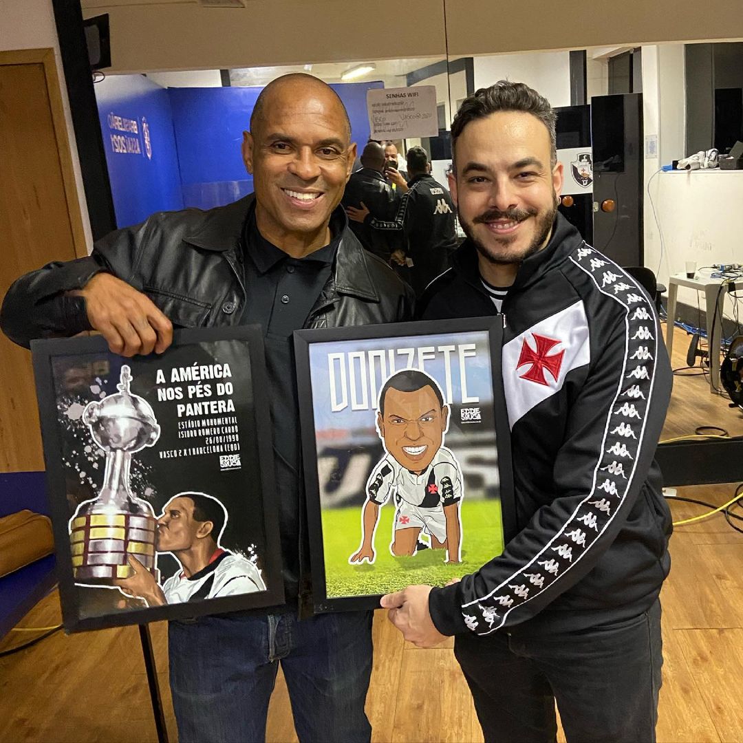Ilustrador vascaíno Eddie Souza participou do pré-jogo de Vasco x CRB na VascoTV; veja como foi