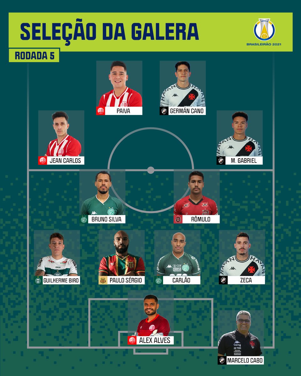 @oficialguarani, @GEBrasilOficial, @Coritiba e @sampaiocorrea também marcaram presença no time ideal da quinta rodada!