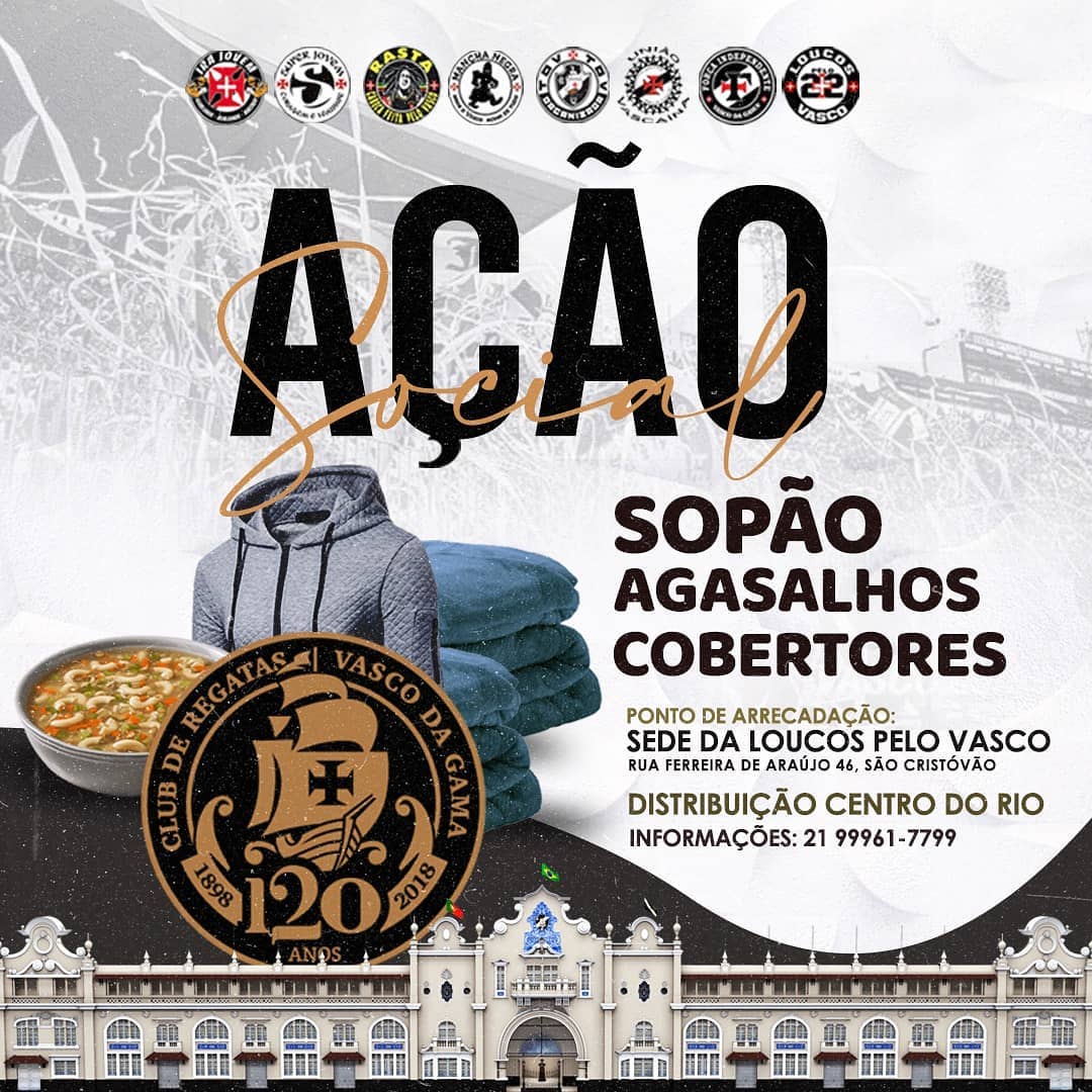 Organizadas do Vasco farão distribuição de sopa, agasalhos e cobertores; saiba como colaborar