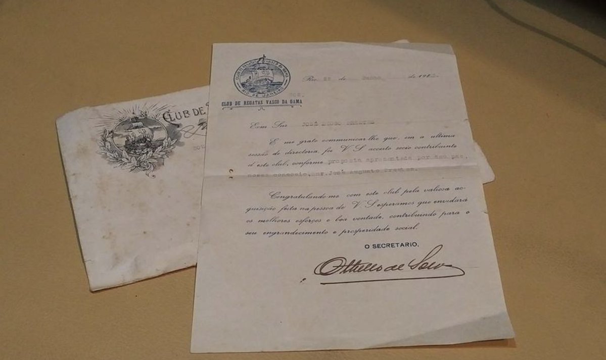 É apenas uma lembrança! Trata-se de uma carta comunicando a aceitação do filho de José Augusto Prestes no quadro social do Vasco, antes dele ser eleito presidente. Ele próprio se tornou sócio no início do ano de 1923. De repente... veio 1924 e o resto é "resposta histórica"! ?