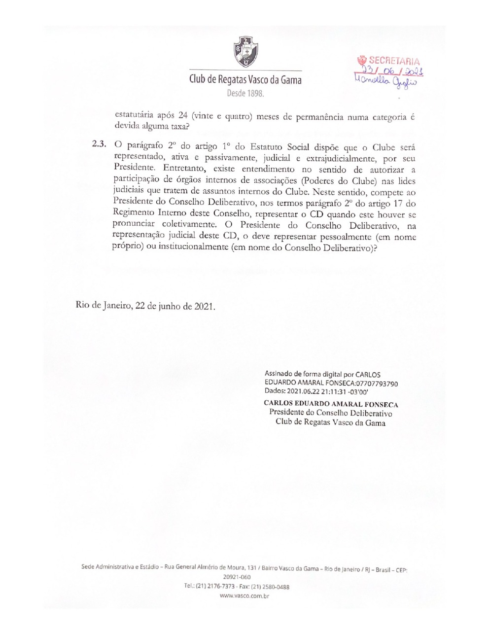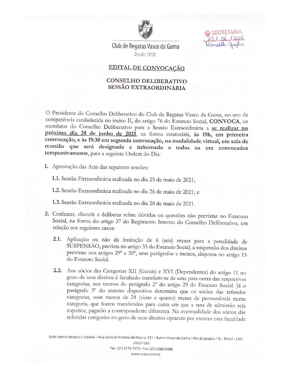 31/05/21 - Resgata Vasco divulga como votou nas últimas reuniões do Conselho Deliberativo